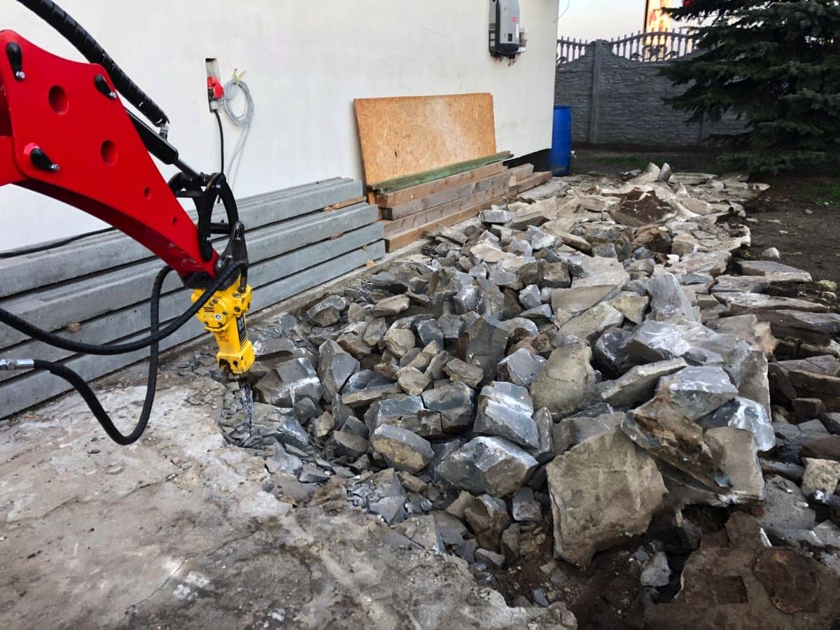 Wszechstronna maszyna do wykopów i wyburzania, przystosowana do pracy z młotem hydraulicznym wyburzeniowym – zalecany model młota: Epiroc (Atlas Copco) SB 52.